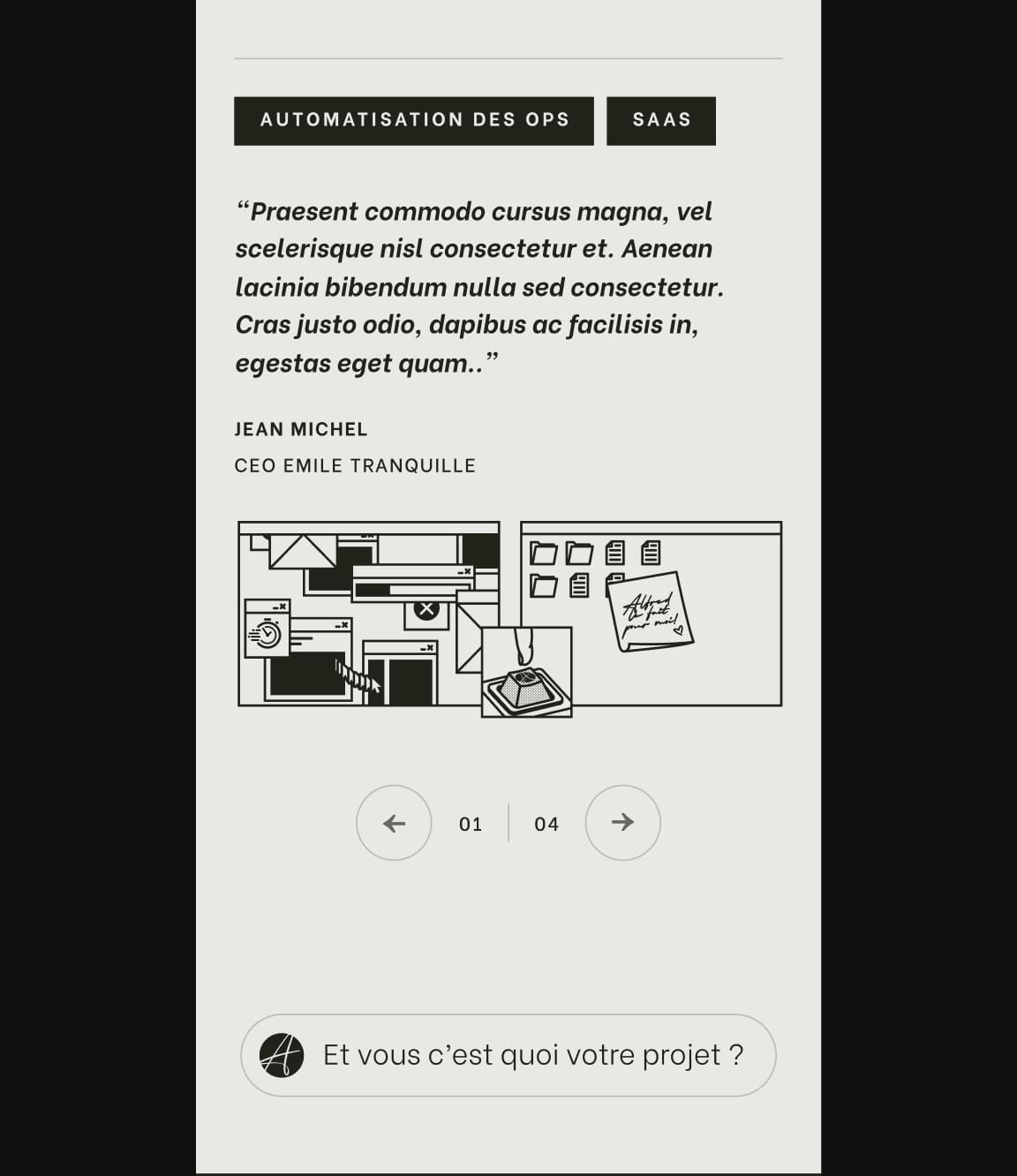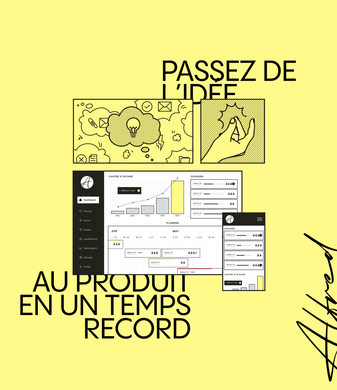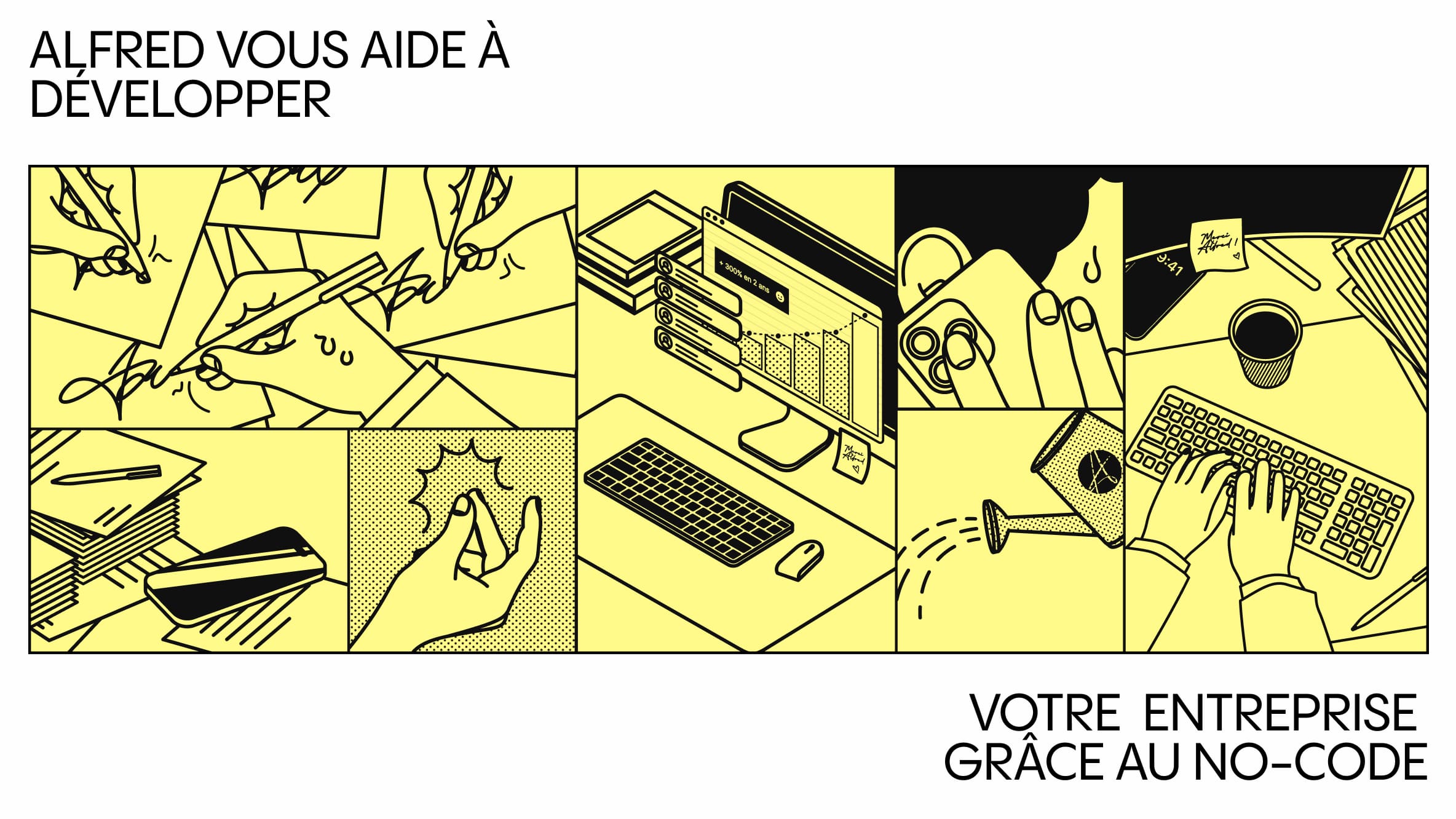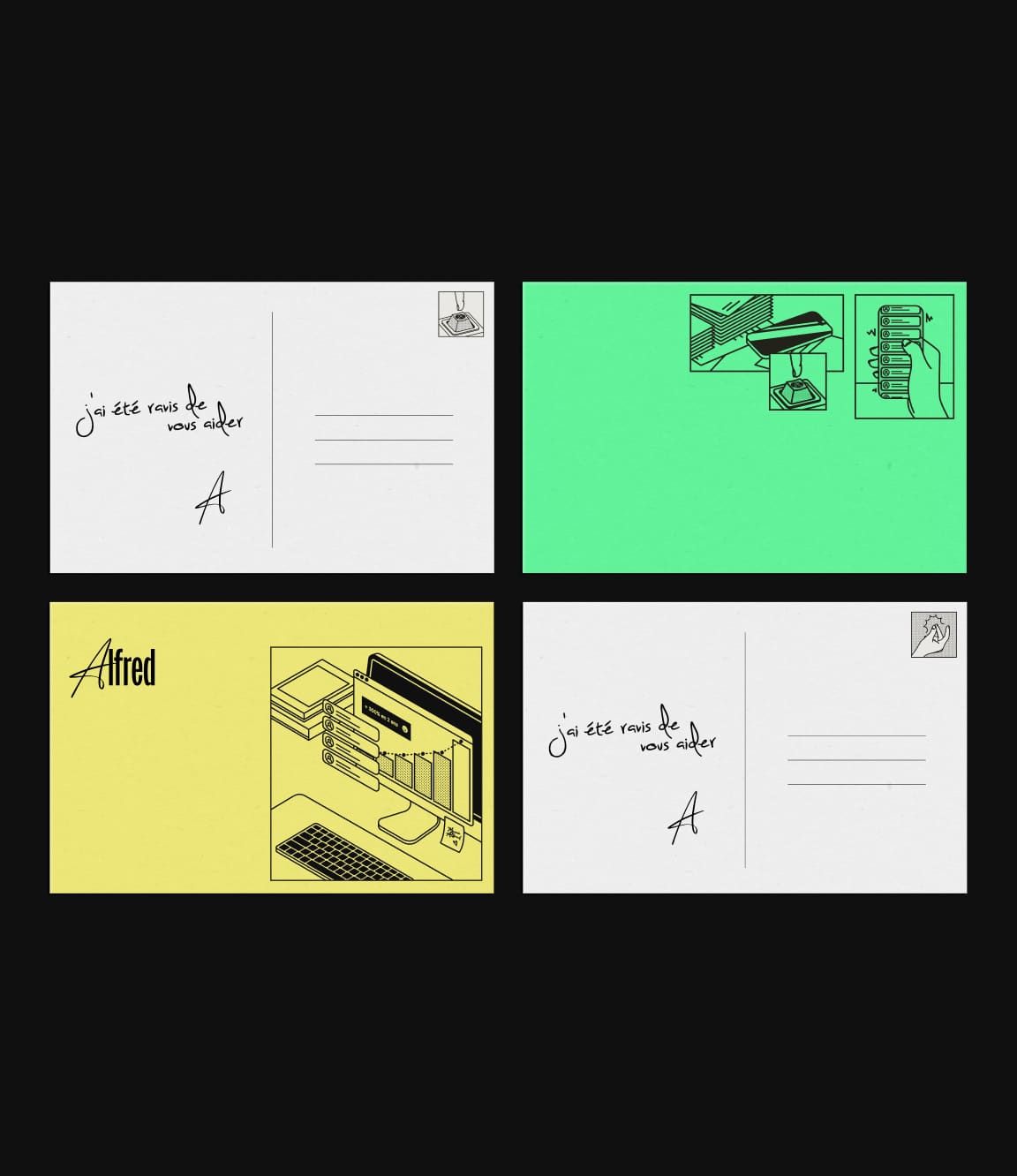 Pour ce projet, nous avons conçu le logo, l’identité visuelle, les illustrations, et le site web. L’intégration a été réalisée par l’équipe d’Alfred avec Framer, pour une exécution impeccable.